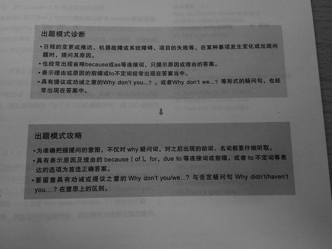 听力是我弱项,练习的时候基本是先做完一遍题目,觉得不确定的小题再重听一遍,然后对答案和解析,之后对着听力原文再听一两遍以求能听懂意思,最后把错题归类分析错的是哪种内容类型。「跨栏托业」附录里有一份常见短句集合,很多人建议把它背下来。我只是听了两遍,对 Part2 的反应能力还是有些许提高。