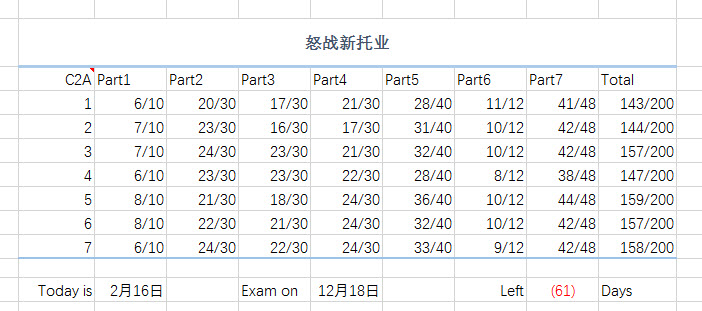 现在大概总结下此次备考的经历,希望有下次的话可以考得更好。